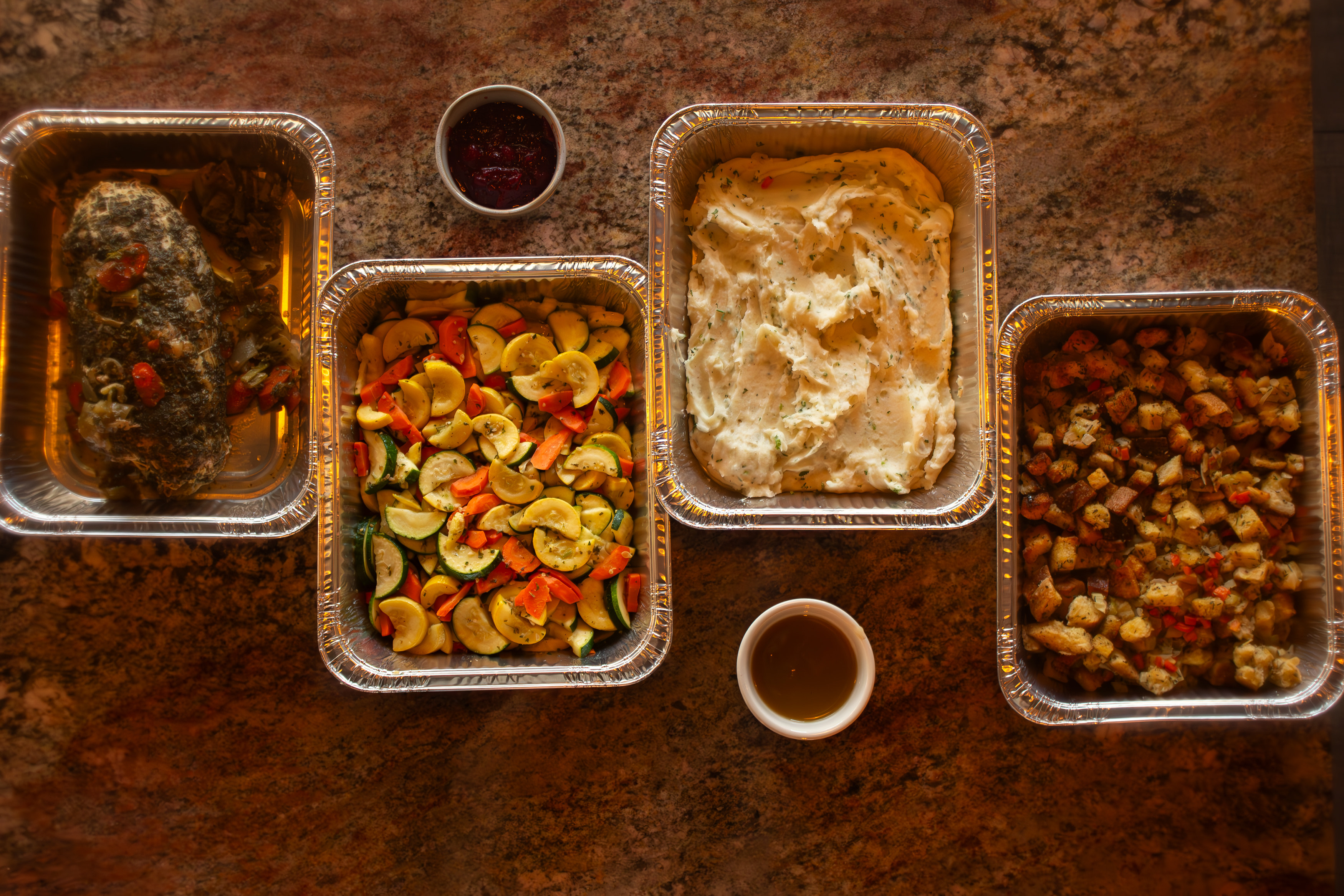 Our Thanksgiving Dinner Package is back! Our full meal comes with Seasoned Turkey Breast, Homemade Stuffing, Creamy Garlic Mashed Potatoes, Seasoned Veggies, And Baguette Slices. With an option of adding our special red sauce on top of your juicy, seasoned turkey breast. Preorder now! Family Meal Package - 120$